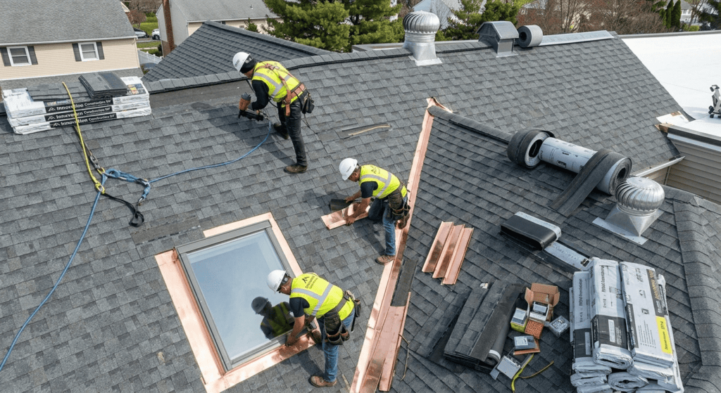 Professional roof installation involves more than just nailing shingles. Proper underlayment, flashing, ventilation and fasteners must all be integrated. Inadequate flashing can lead to leaks around chimneys, valleys and skylights, so installers must select the right type (step, valley, drip edge, pipe, skylight or eave). Roof flashings are designed to prevent water penetration and leaks in the vulnerable areas of your roof where different roofing planes intersect or where a roof penetration exists. They act as protective barriers that block water and redirect it to safer areas, protecting your family and investment. If flashings are neglected, water may seep behind shingles, causing rot and interior damage. Always confirm that your roofing contractor has experience installing and inspecting flashing.