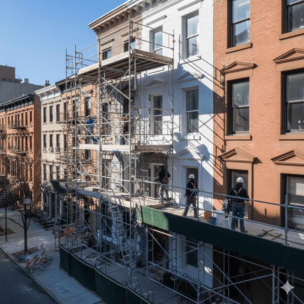 Our coatings are specifically selected to withstand UV rays, freeze-thaw cycles, and extreme NYC weather conditions. For masonry and stucco, we apply Breathable Masonry Coating systems that allow vapor release while preventing trapped moisture, reducing blistering, peeling, and long-term damage. We use premium products such as Romabio Masonry Flat, Masonry Flat, and mineral-based limewash colors where historically appropriate—drawing inspiration from resources like the Haverstraw Brick Museum for authentic restoration work.