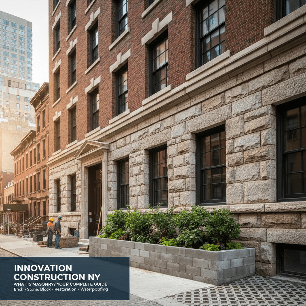 Structures type of construction stands out for its strength and beauty, including options like rubble. Is masonry concrete? Not exactly, though concrete blocks are a common unit in concrete work. Masonry or masonary, by the way, is always spelled masonry, and it covers far more than poured concrete work. Our team at Innovation Construction NY specializes in brickwork construction that blends function with style.
